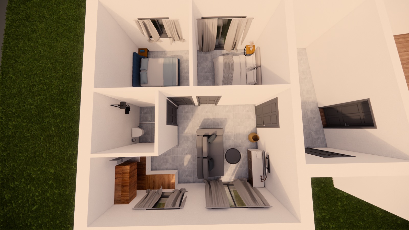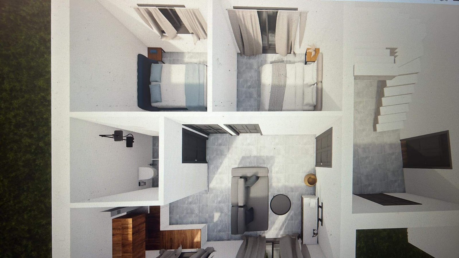 It has 2 comfortable bedrooms, living room, kitchen, bathroom and wc. The modern design and the materials that will be used create a beautiful atmosphere. The maisonette has air conditioning and the installation of pipes for future connection with a burner to cover heating and cooling needs.